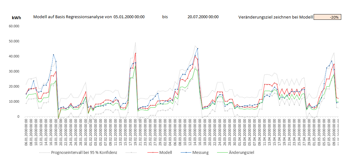 Excel Tool für Energiekennzahlen (EnPI) mit Regressionsanalyse und Prognoseintervall